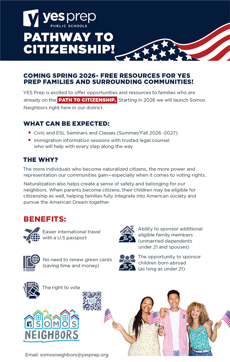 YES Prep is excited to offer opportunities and resources to families who are already on the PATH TO CITIZENSHIP. Starting in 2026 we will launch [...]