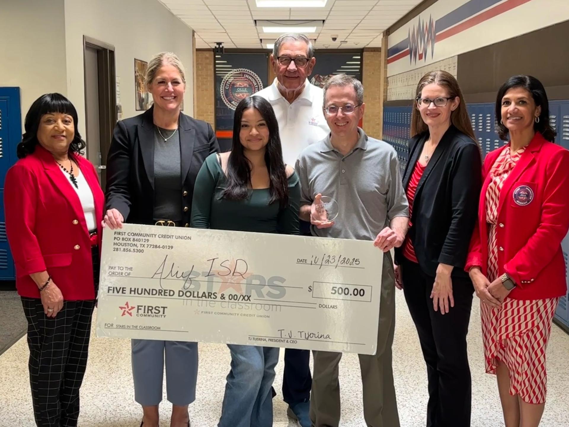 Congratulations to George Tennison from Alief Olle Middle School who was recently surprised with the Stars in the Classroom Award by First Community Credit Union! This special recognition celebrates Mr. Tennison’s exceptional dedication, inspiring teaching, and lasting impact on his students. We’re proud to have educators like him who exemplify Alief ISD’s commitment to excellence every day.