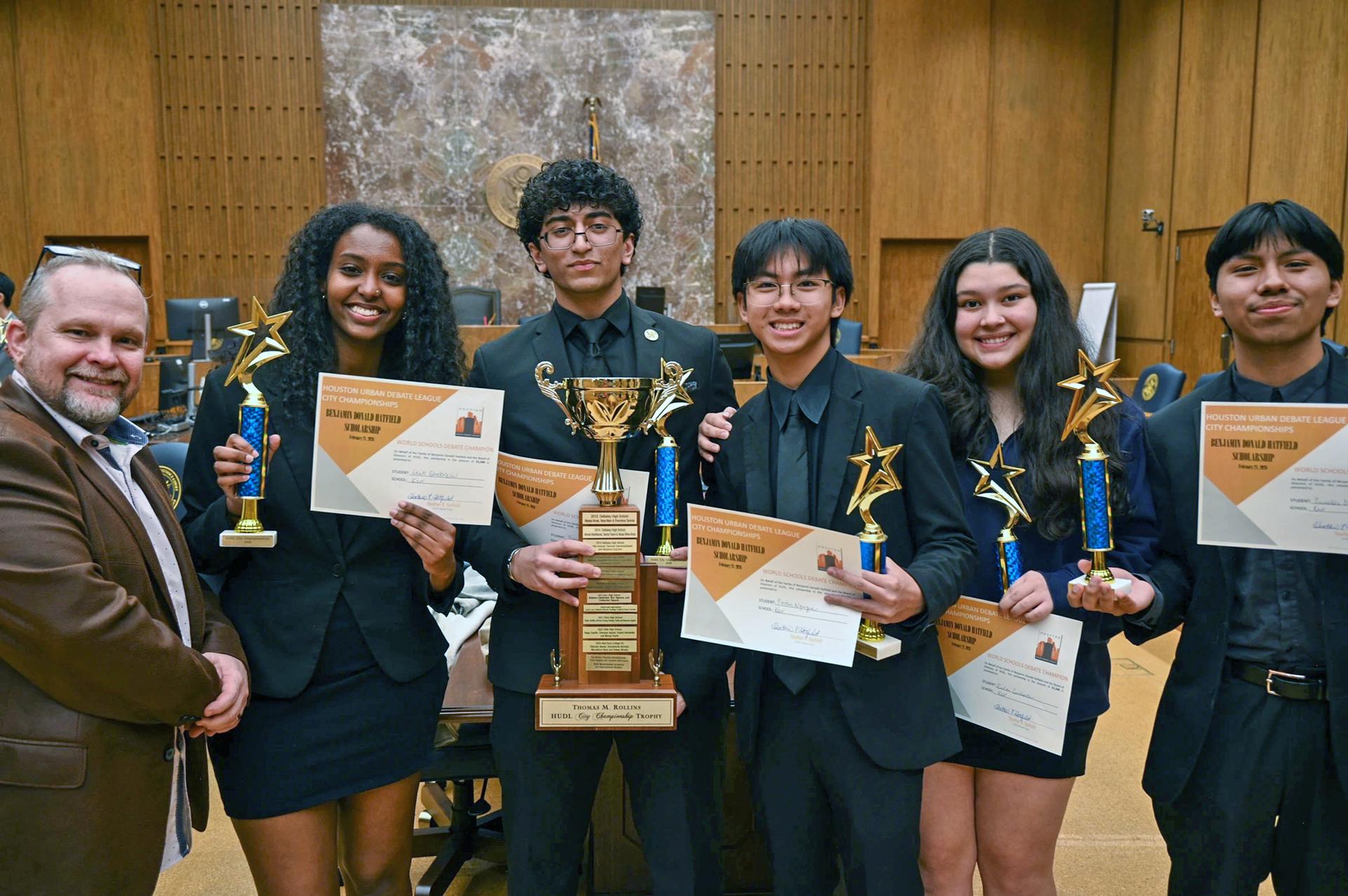 Kerr High School students Leah Ghebrelul and Erica Carranza, returning members of last year’s runner-up team, joined teammates Preston Nguyen, Syed Ali, and Gerardo Diaz to capture this year’s championship. The winning students earned scholarships and the opportunity to advance to national competition. |